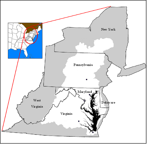 Case Study #1: Incorporating NASA MODIS Cloud Cover data into the Chesapeake Bay Program’s Watershed Simulation Model The mission of the Chesapeake Bay Program (CBP) is to restore, enhance, and protect the living resources and their natural habitats, and protect human health within the Chesapeake Bay Watershed (CBW). The CBW covers over 64,000 square miles and counts its area in six states (New York, Pennsylvania, Delaware, Maryland, Virginia and West Virginia) as well as the District of Columbia (Figure 1). The watershed population is about 16 million and is expected to grow to 18 million by 2020. Of the 130 estuaries in United States, the Chesapeake Bay is the largest and most biologically diverse with more than 3,600 species of plants, fish and animals. It helps to support the region's economy as a major source of seafood and a major hub for shipping and commerce. In 1989, the value of the Bay was estimated at $678 billion (CB2K). The CBP is a partnership led by the Chesapeake Executive Council whose members include the governors of Maryland, Virginia and Pennsylvania; the mayor of the District of Columbia; the administrator of the U.S. Environmental Protection Agency and the chair of the Chesapeake Bay Commission. The Bay Program is representative of various regional organizations across the country that are charged with the stewardship of geographically complex and rapidly changing ecosystems whose health affects hundreds of thousands, if not millions, of persons on a regular basis.